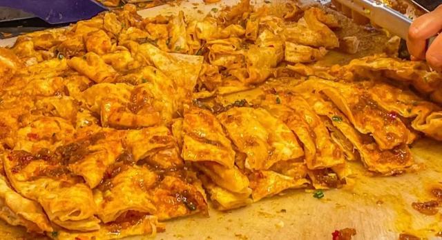 一张大饼切成一块一块的,味道很香,基本上三元一份,就可以吃饱。
